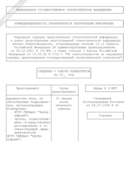 Сведения о работе конвертеров. Форма № 3-МЕТ