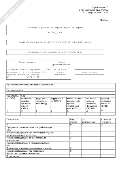Сведения о работе по охране труда субъектов электроэнергетики (рекомендуемый образец заполнения)