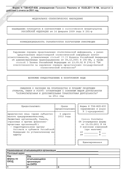 - Источник– Приказ Росстата от 15.03.2011 № 64