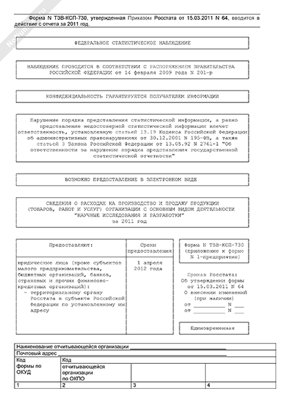 - Источник– Приказ Росстата от 15.03.2011 № 64