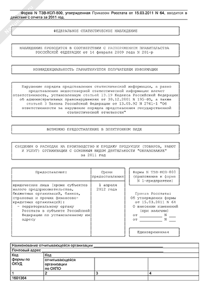 - Источник– Приказ Росстата от 15.03.2011 № 64