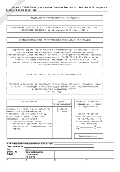 - Источник– Приказ Росстата от 15.03.2011 № 64