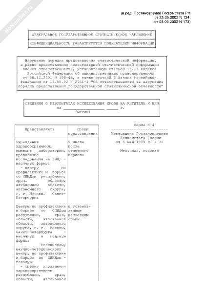 Сведения о результатах исследования крови на антитела к ВИЧ (форма № 4)