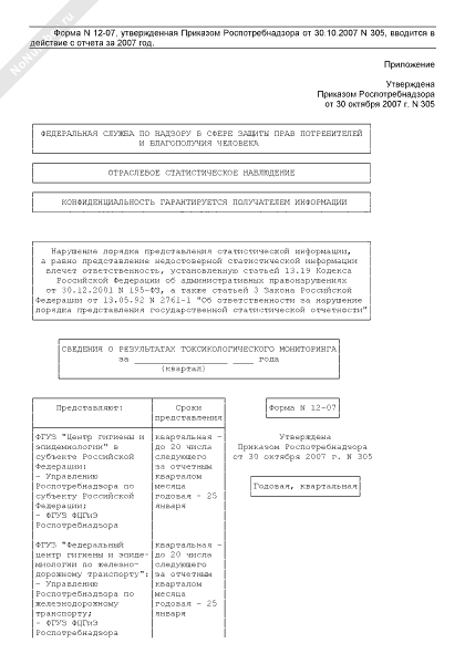 - Источник– Приказ Роспотребнадзора от 30.10.2007 № 305