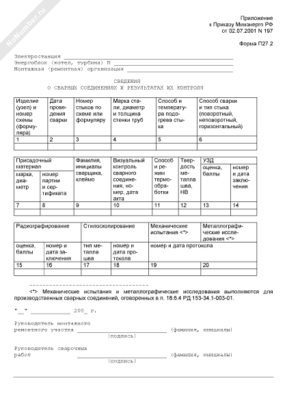 Сведения о сварных соединениях и результатах их контроля. Форма № П27.2