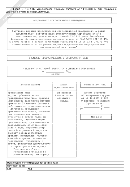Сведения о неполной занятости и движении работников. Форма № П-4 (НЗ)