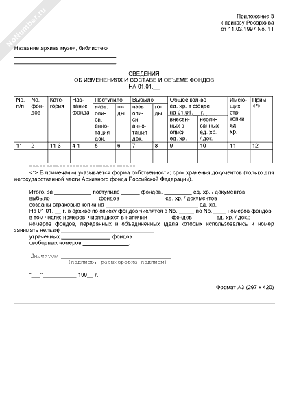 Сведения о составе документов Госфонда (рекомендуемый образец заполнения)