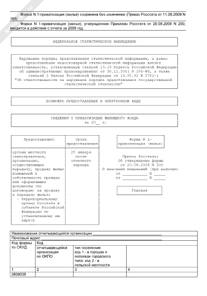 Сведения о приватизации жилищного фонда. Форма № 1-приватизация (жилье)