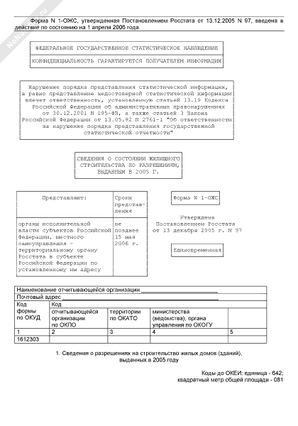 Сведения о состоянии жилищного строительства. Форма № 1-ОЖС