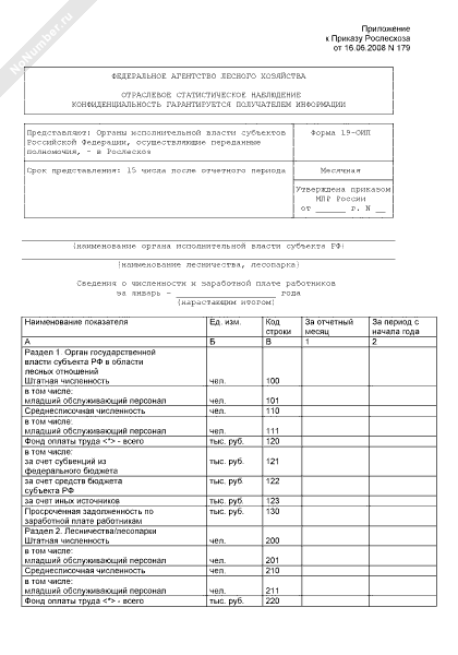 Сведения о численности и заработной плате работников. Форма № 19-ОИП