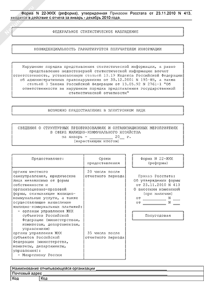 Сведения о структурных преобразованиях и организационных мероприятиях в сфере жилищно-коммунального хозяйства. Форма № 22-ЖКХ (реформа) (полугодовая)