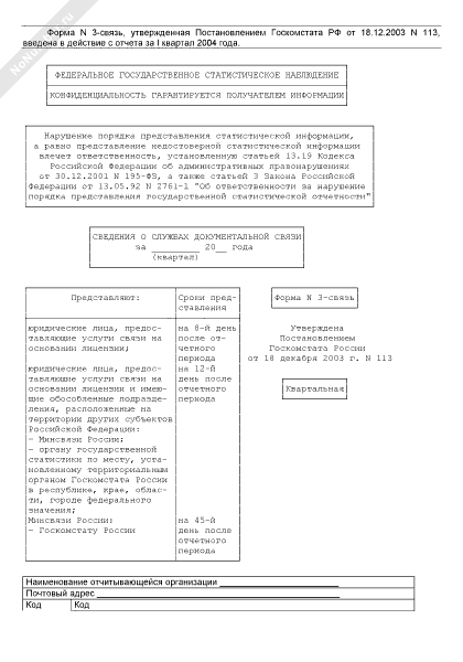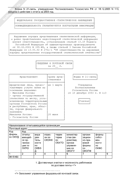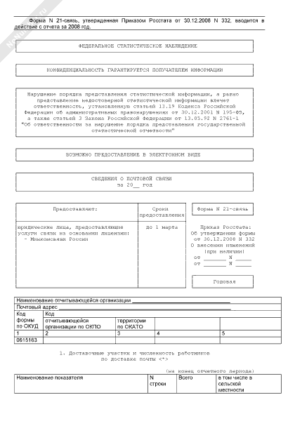 Сведения о почтовой связи. Форма № 21-связь (годовая)