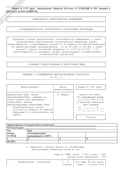 Сведения о промышленном железнодорожном транспорте. Форма № 1-ТР (жел)