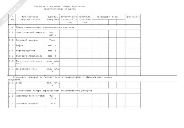 Сведения о величине потерь переданных энергетических ресурсов