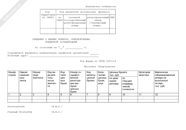 Сведения о ценных бумагах, приобретенных кредитной организацией