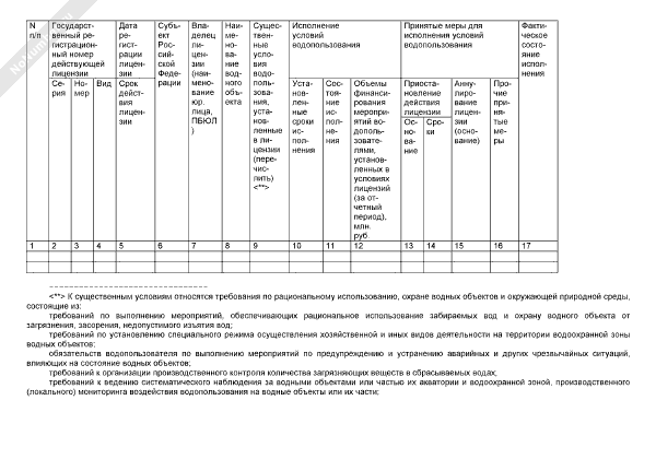Сведения о выполнении условий водопользования