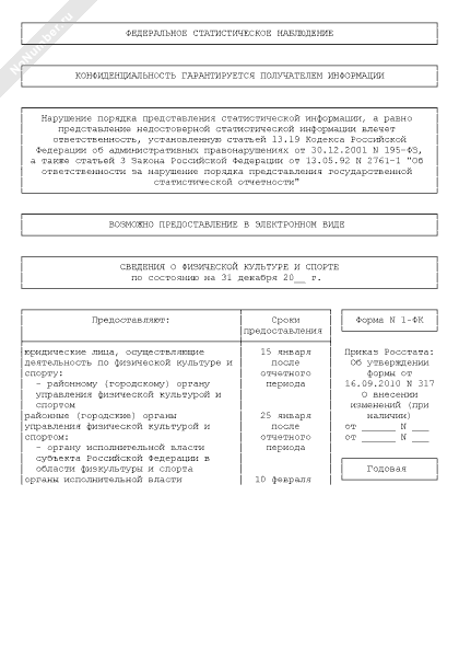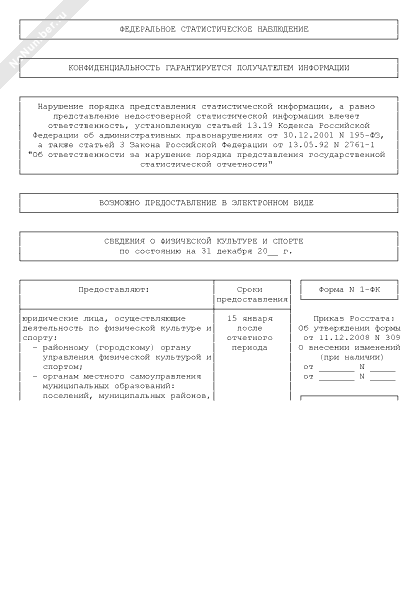 Сведения о физической культуре и спорте. Форма № 1-ФК