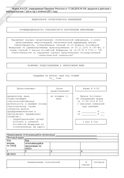 Сведения об итогах сева под урожай. Форма № 4-СХ