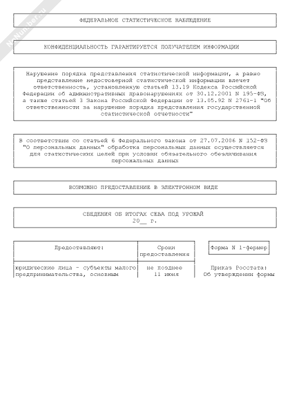 Сведения об итогах сева под урожай. Форма № 1-фермер