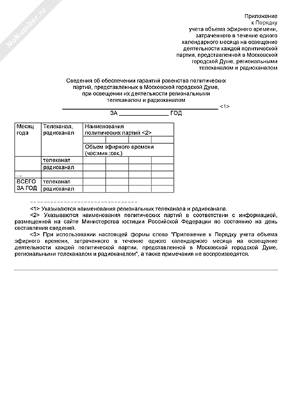 Сведения об обеспечении гарантий равенства политических партий, представленных в Московской городской Думе, при освещении их деятельности региональными телеканалом и радиоканалом (рекомендуемый образец заполнения)
