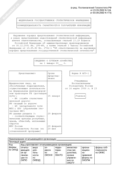Сведения о путевом хозяйстве. Форма № АГО-1