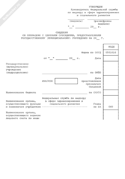 Сведения об операциях с целевыми субсидиями, предоставленными государственному (муниципальному) учреждению, подведомственному Федеральной службе по надзору в сфере здравоохранения и социального развития