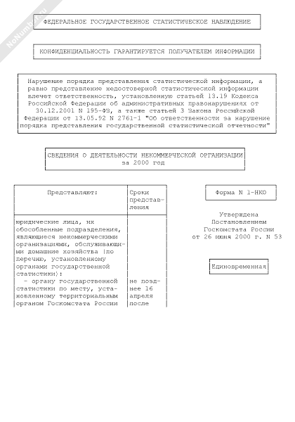 Сведения о деятельности некоммерческой организации. Форма № 1-НКО