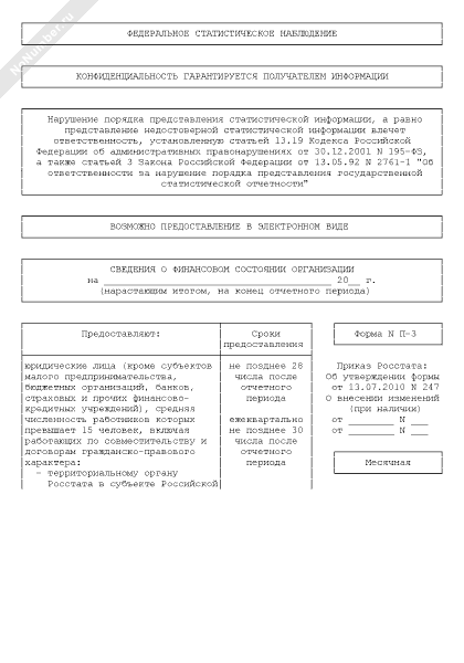 Сведения о финансовом состоянии организации. Форма № П-3 (месячная)