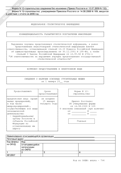 Сведения о наличии основных строительных машин. Форма № 12-строительство