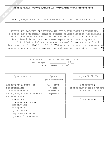 Сведения о парке воздушных судов. Форма № 32-ГА (квартальная)