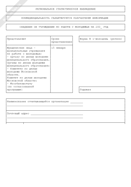 Сведения об учреждении по работе с молодежью. Форма № 1-молодежь (регион)