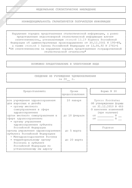 Сведения об учреждении здравоохранения. Форма № 30 (годовая)