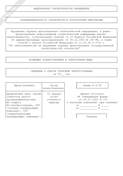 Сведения о работе тепловой электростанции. Форма № 6-ТП (годовая)