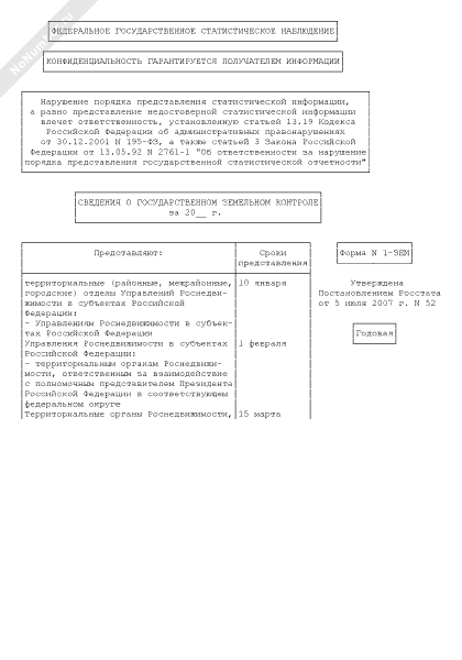 Сведения о государственном земельном контроле. Форма № 1-ЗЕМ