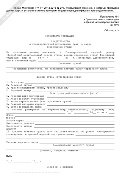 Свидетельство о государственной регистрации прав на судно (строящееся судно)