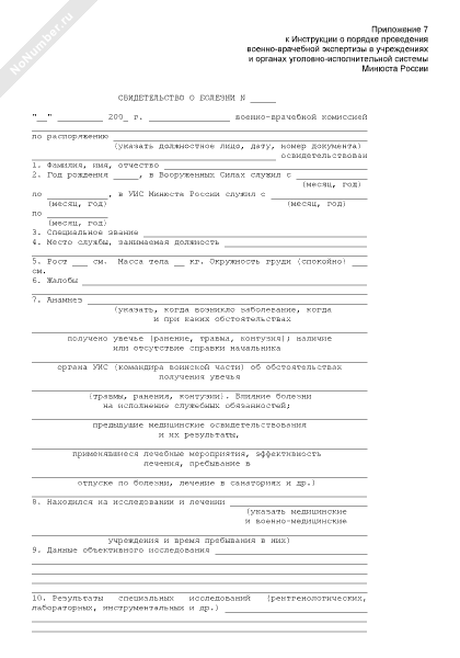 Свидетельство о болезни сотрудника органов внутренних дел Российской Федерации и военнослужащего внутренних войск Министерства внутренних дел Российской Федерации (рекомендуемый образец заполнения)