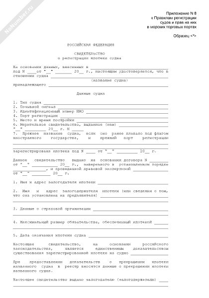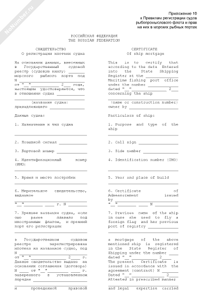 Свидетельство о регистрации ипотеки судна (рус./англ.)