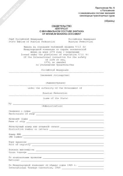 Свидетельство о минимальном составе экипажа (рус./англ.)