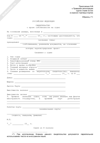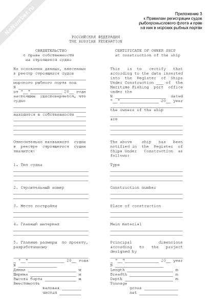 Свидетельство о праве собственности на строящееся судно (рус./англ.)