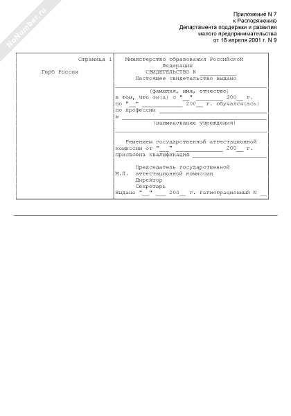 Свидетельство о прохождении повышения квалификации (форма № 1)