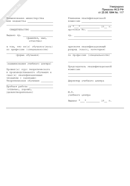 - Источник– Приказ ФСЗ РФ от 25.08.1994 № 117