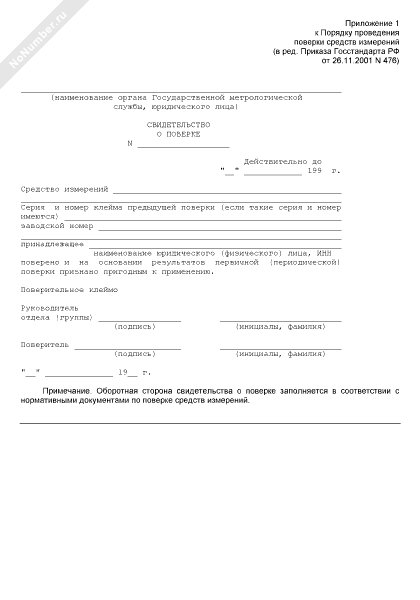 Свидетельство о поверке средств измерений