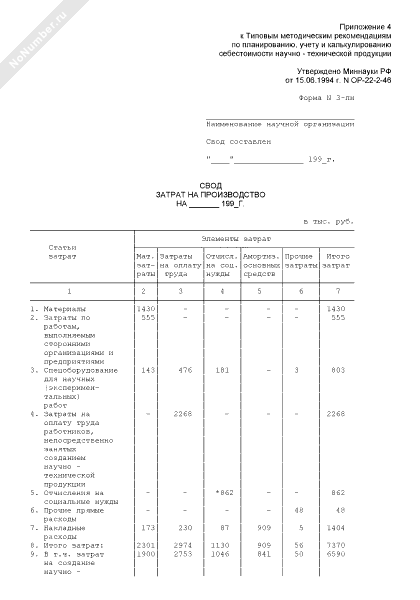 Свод затрат на производство научно-технической продукции. Форма № 3-пн (рекомендуемый образец заполнения)