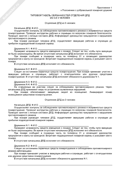 Типовой табель обязанностей отделения добровольной пожарной дружины (ДПД) из 5 и 3 человек