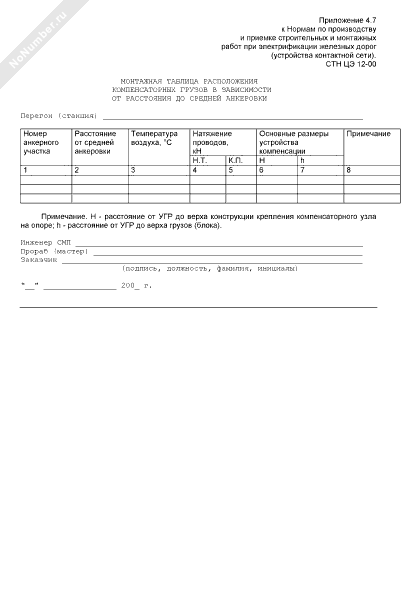 - 12Монтажная таблица установки консолей на анкерном участке в зависимости от его длины и температуры воздуха при электрификации железных дорог (устройства контактной сети)