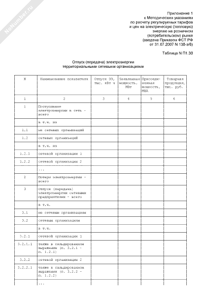 - 16Отпуск (передача) электроэнергии территориальными сетевыми организациями (таблица № П1.30)