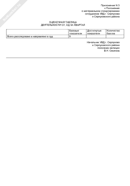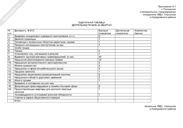 - 20Оценочная таблица деятельности следственных управлений, отделов дознания в г. Серпухове (за квартал)