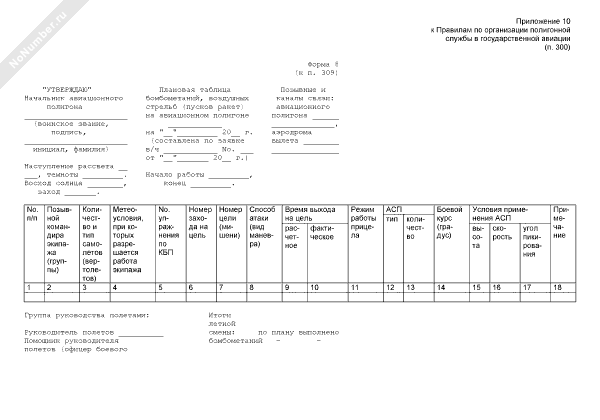 - 22Плановая таблица бомбометаний, воздушных стрельб (пусков ракет) на авиационном полигоне (форма № 8)