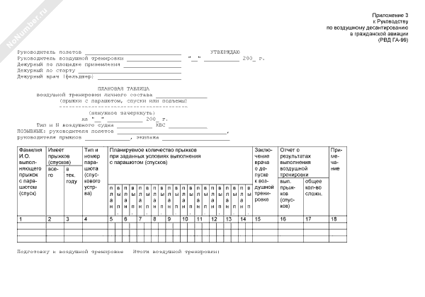 - 23Плановая таблица воздушной тренировки личного состава организации гражданской авиации (прыжки с парашютом, спуски или подъемы)