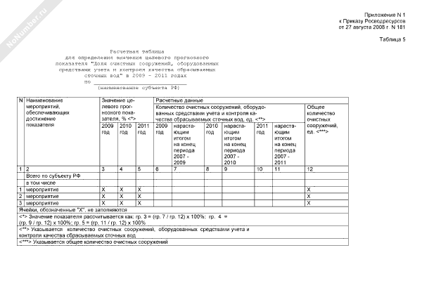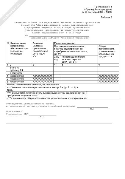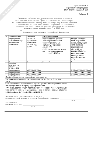 - 31Расчетная таблица для определения значения целевого прогнозного показателя «Доля установленных (нанесенных на землеустроительные карты) водоохранных зон водных объектов в протяженности береговой линии, требующей установления водоохранных зон (участков водных объектов, испытывающих антропогенное воздействие)» в 2010 году